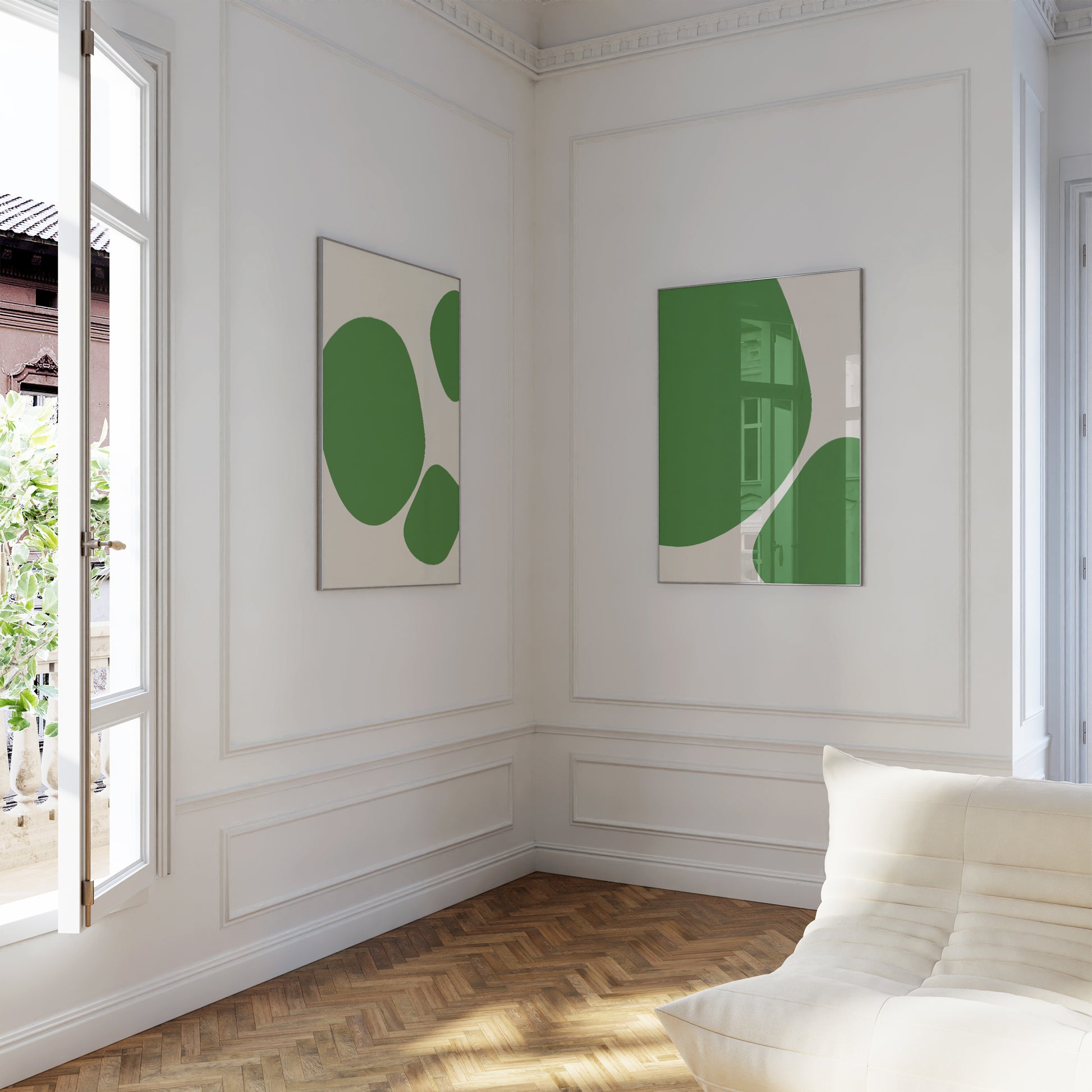 This printable are 2 artworks of organic pieces in green with beige background, that will enhance any decor.