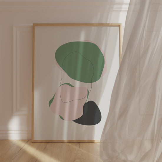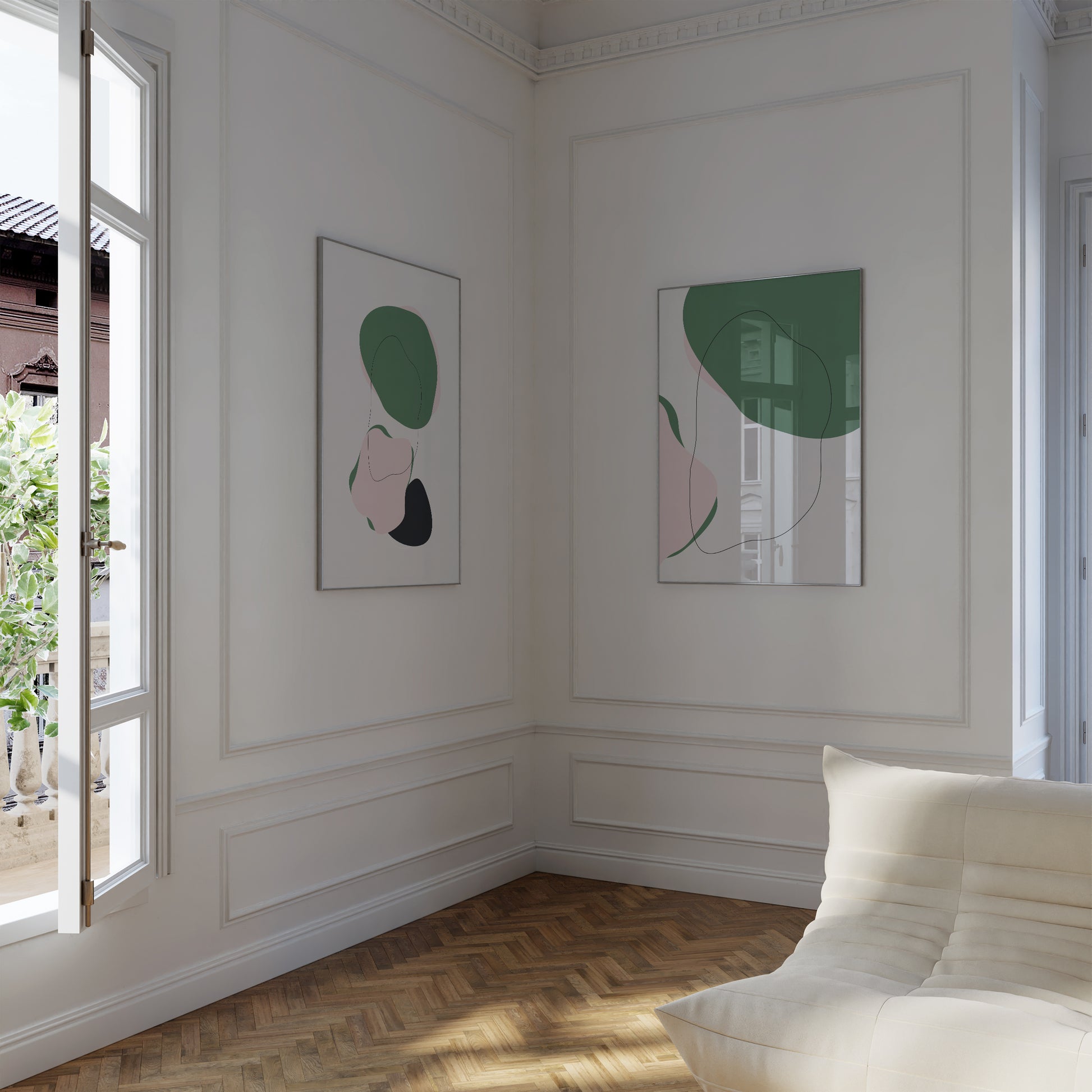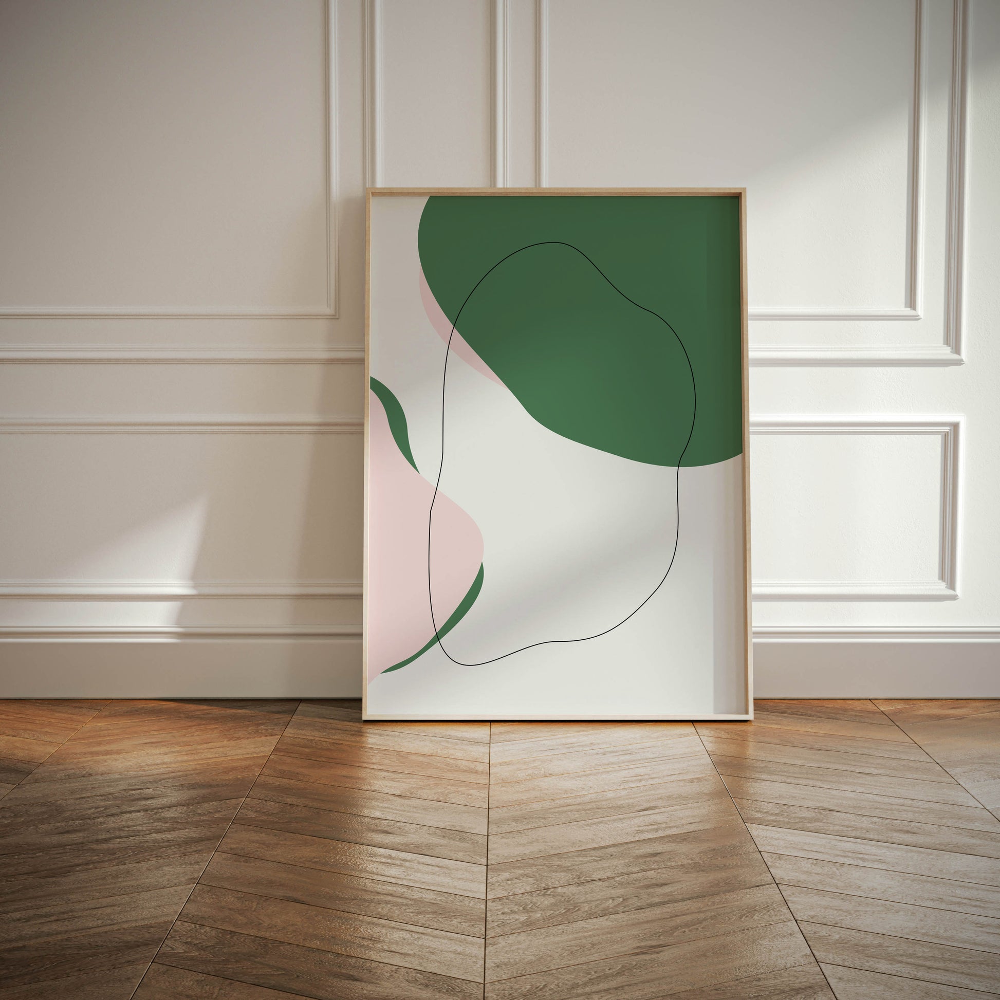 This printable are 2 artworks of organic shapes pieces in green, black & pink with grey background, that will enhance any decor.
