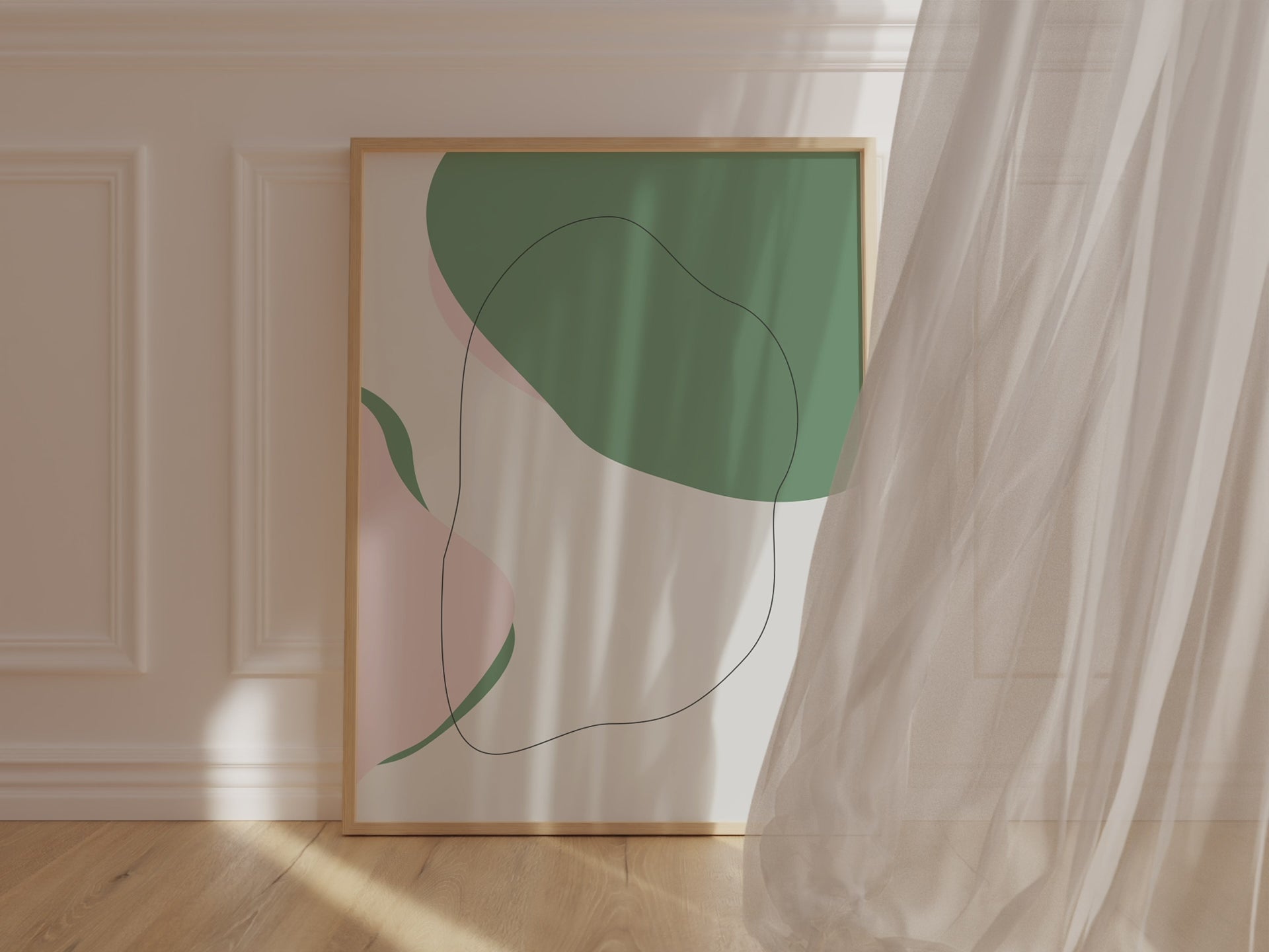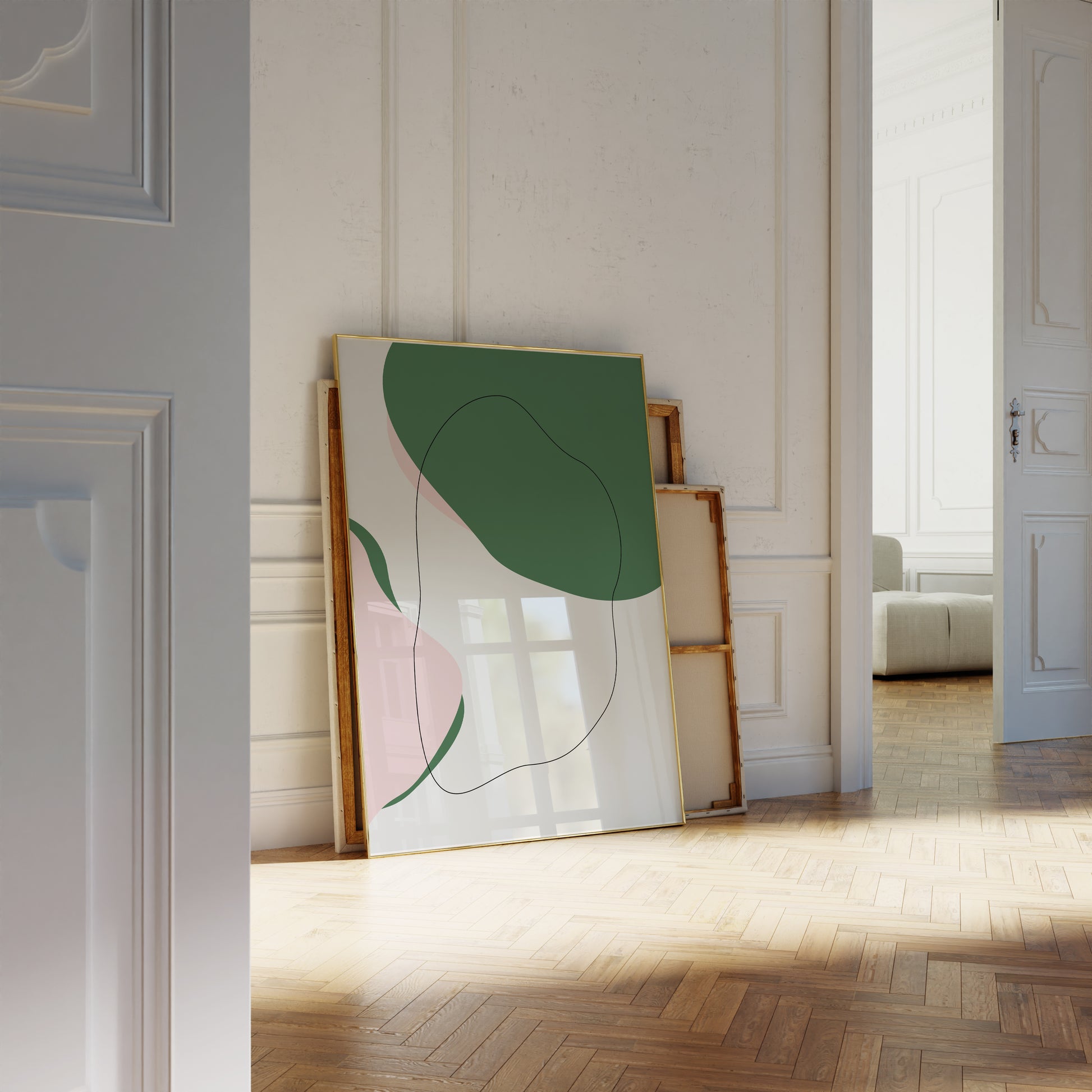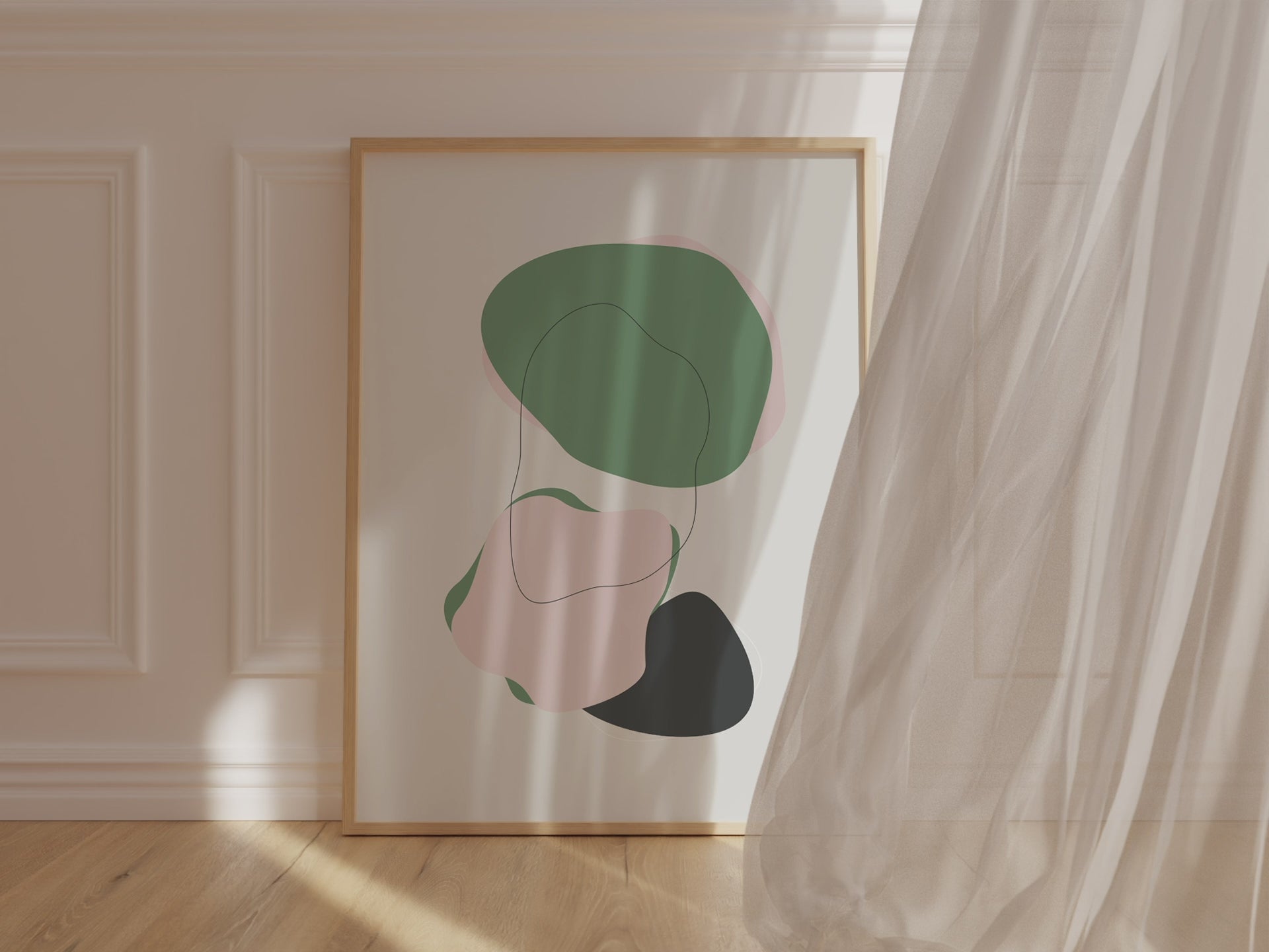 This printable are 2 artworks of organic shapes pieces in green, black & pink with grey background, that will enhance any decor.