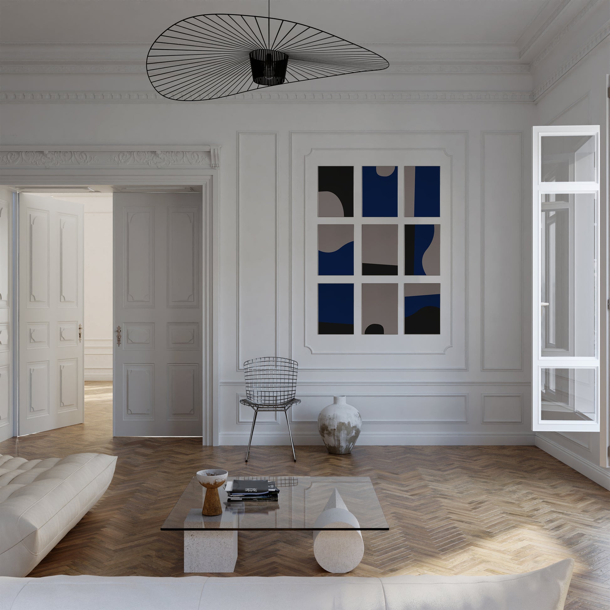 This printable are 9 artworks of organic shapes pieces in beige, black & blue, that will enhance any decor.